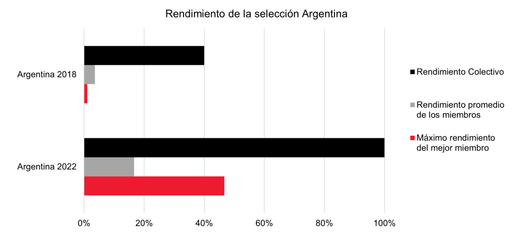 Es preciso mencionar que tanto de manera individual como del equipo, existe una marcada diferencia producto de la interacción y el dinamismo del equipo, cuyo equilibrio dio los resultados que la selección anhelaba, ser campeones mundiales en Qatar 2022. Sumado a ello, el Balón de Oro  fue otorgado a Lionel Messi como mejor jugador del Mundial, el Guante de Oro al  Dibu Martínez y el premio al Mejor Futbolista Joven a Enzo Fernández.